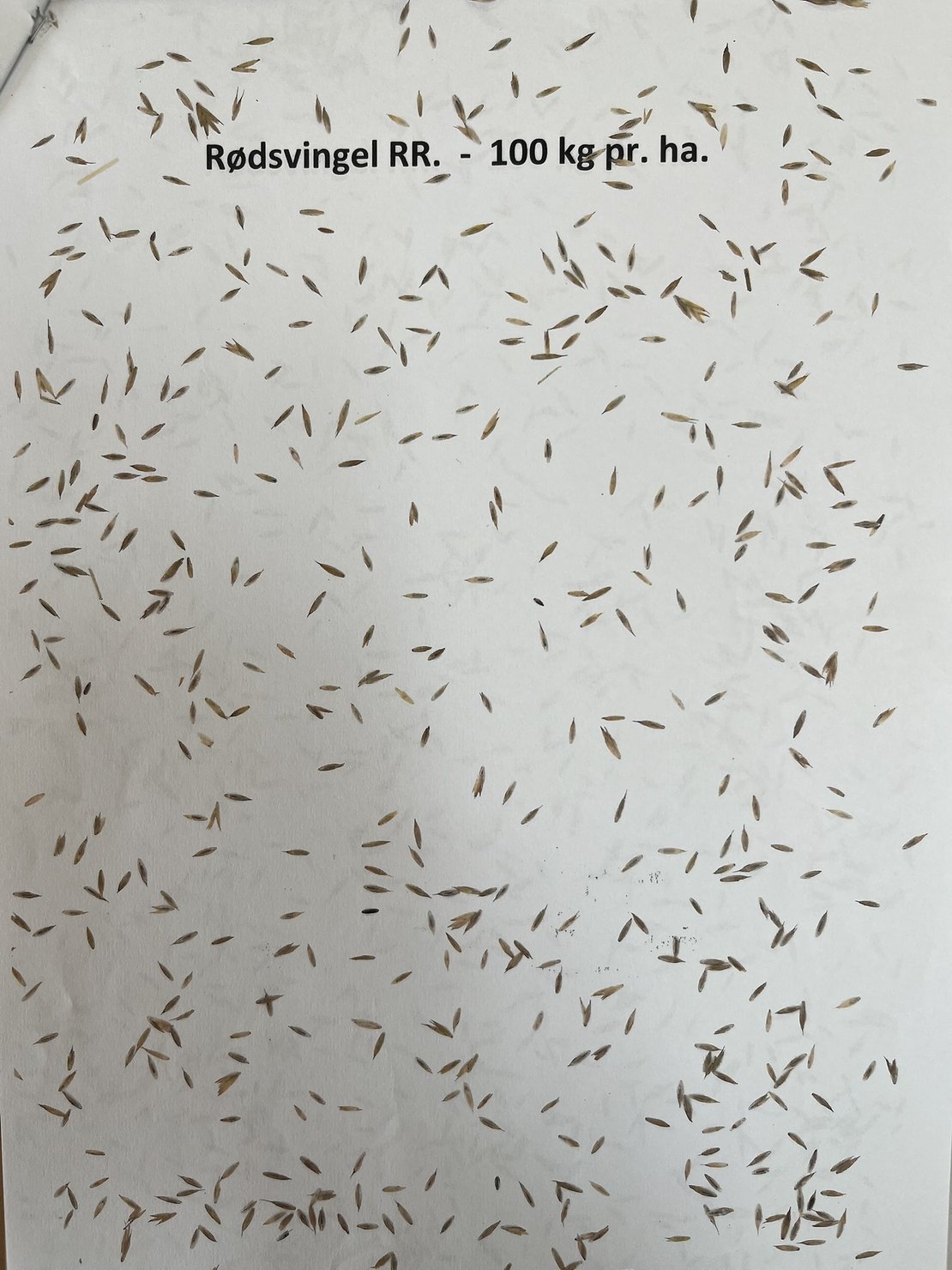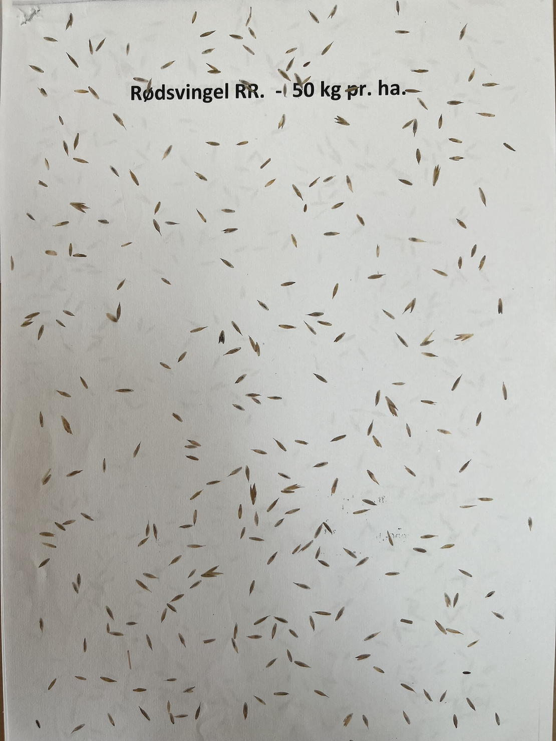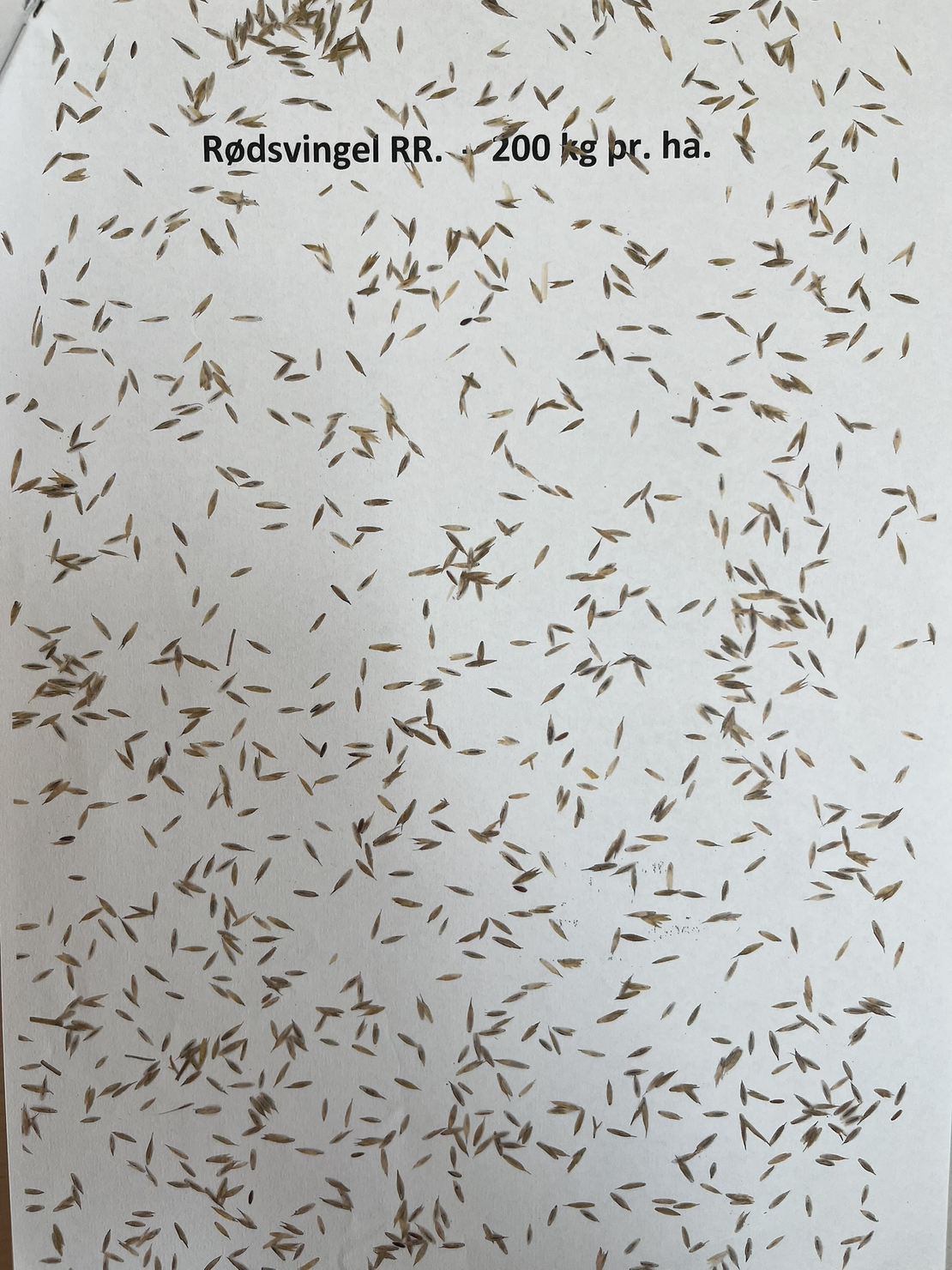 Her ses eksempler på dryssespild i rødsvingel før høst