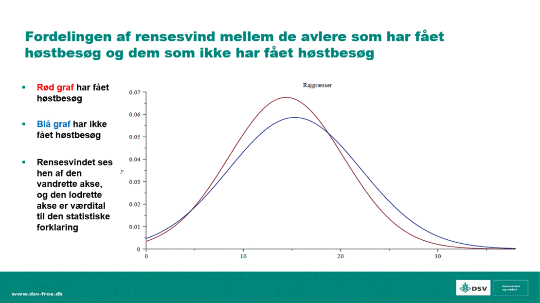 Tabel nr. 2 viser fordelingen af rensesvind for de avlerne, som har fået høstbesøg og dem som ikke har haft høstbesøg. Både gennemsnittet og spredning hos dem der har fået høstbesøg, er lavere, end dem som ikke har fået høstbesøg. Gennemsnittet er 0,9 procentpoint lavere. Det betyder, ikke at alle skal have høstbesøg, men at der er potentiale for at kunne dygtiggøre sig og investere lidt mere tid på at få indstillet mejetærskeren.