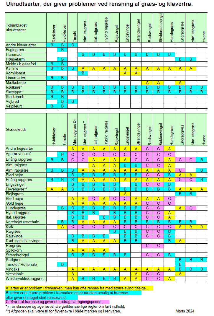 Ukrudtsarter, der giver problemer ved rensning af græs- og kløverfrø